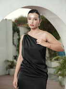 Understated, fluid, and quietly elegant — the Neuer Veil dress brings a soft draped ease to eveningwear. The one-shoulder neckline creates a clean, modern line, while the gentle fall of the fabric adds natural movement. Effortless to wear and refined in its simplicity, it’s the kind of piece that pairs grace with ease — perfect for dinners, intimate gatherings, and moments that call for subtle sophistication.