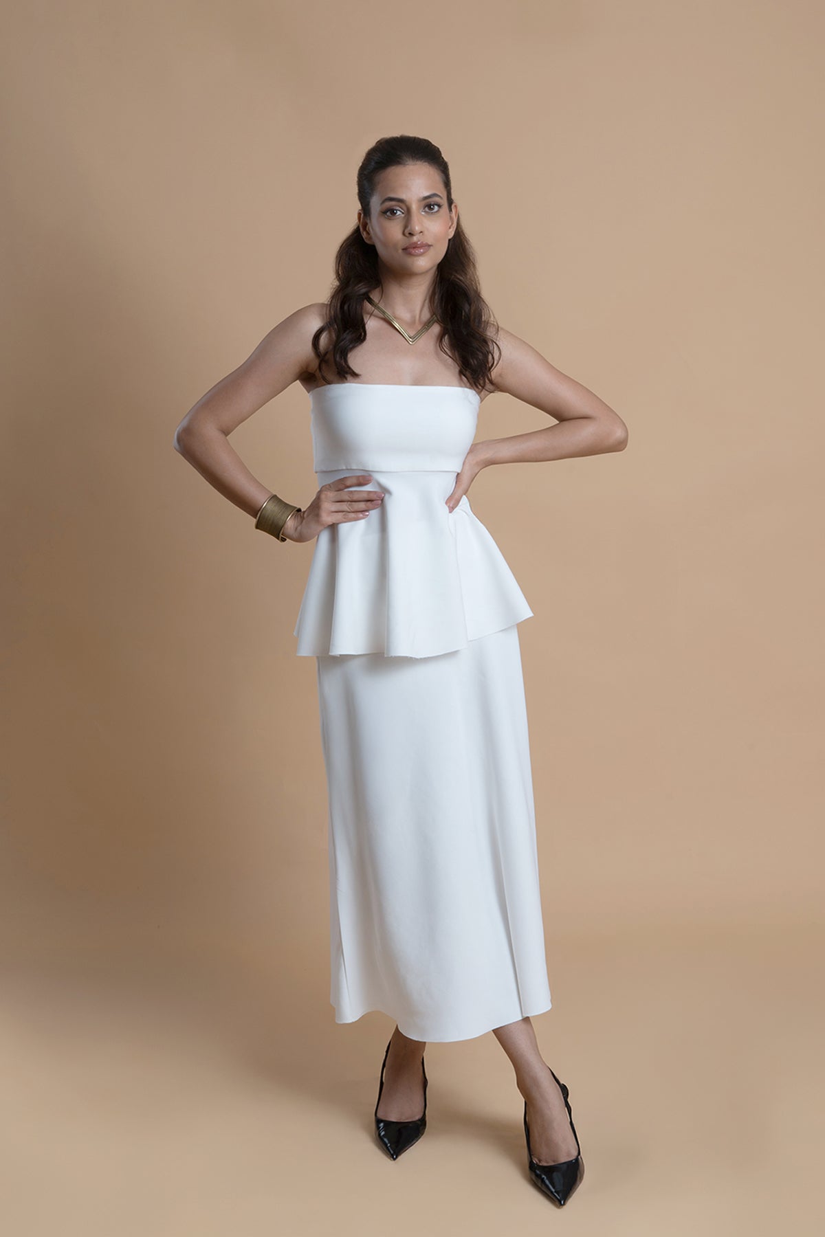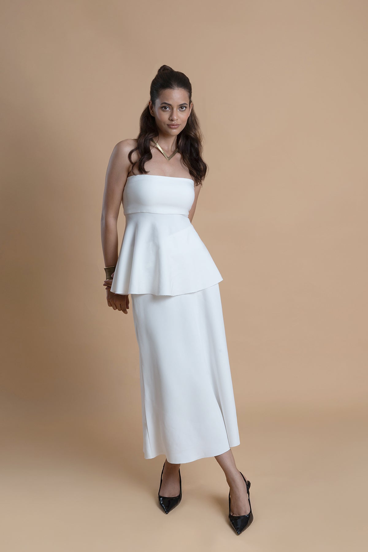 Minimalism meets sophistication in the Éclat Skirt, a graceful A-line midi designed for the modern muse. Flowing effortlessly from a fitted waist to a subtle flare, it offers quiet confidence with every step. Crafted in a structured yet soft fabric, the skirt’s clean lines and gentle movement embody timeless elegance—perfect for soirées, gallery strolls, or chic pre-fall moments. Pair it with a sculpted peplum top, a sleek blouse, or a cropped knit, and finish with delicate gold accents or strappy heels for an effortlessly alluring look.
