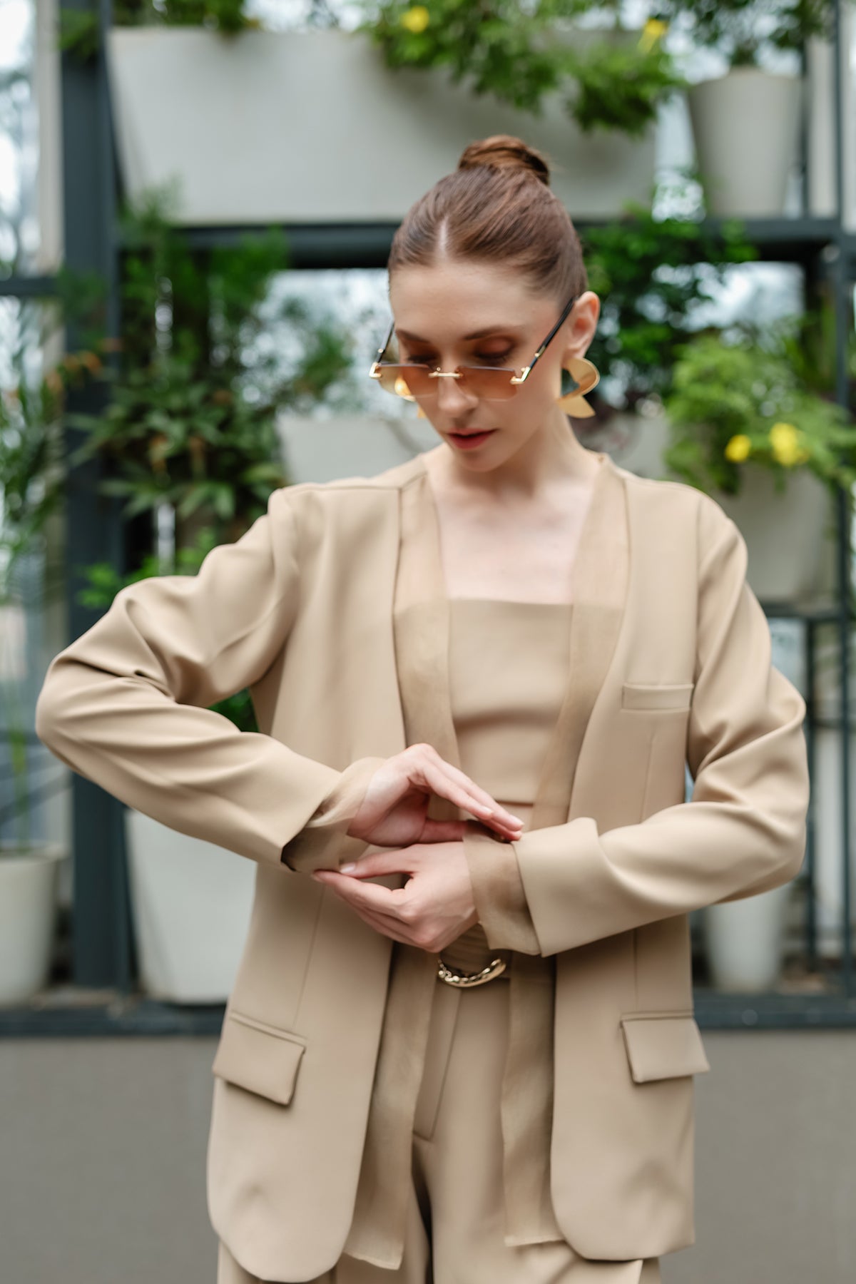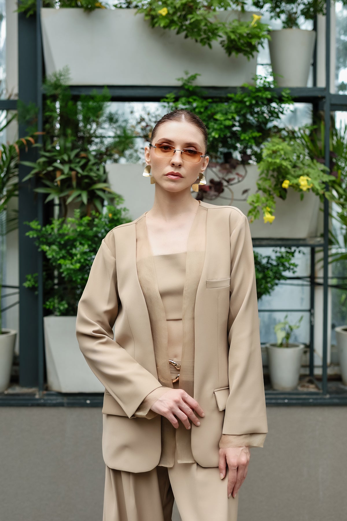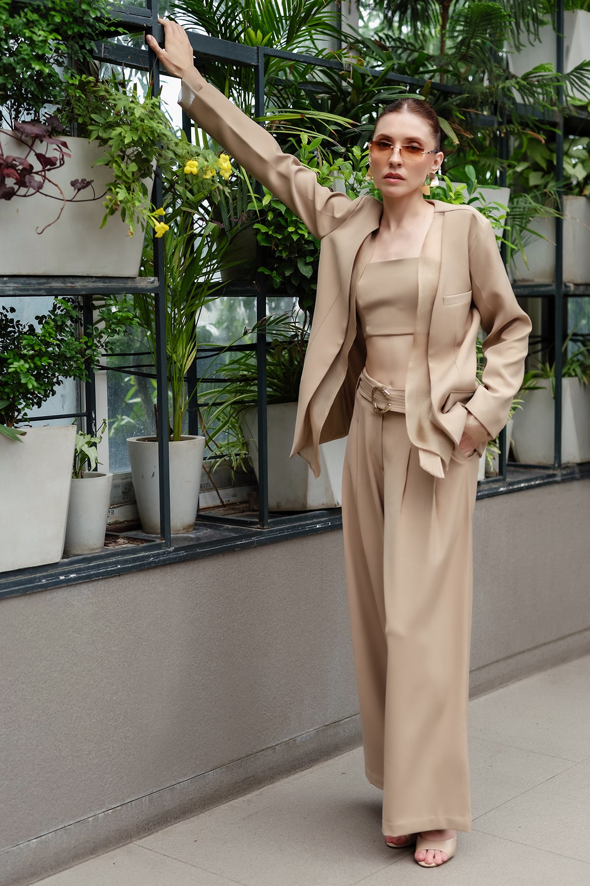 The serene edit -Step into timeless elegance with The Serene Edit. Tailored in luxurious British twill, this Bralette ensemble embodies Outliné’s philosophy — uncomplicated luxury, effortless power, and the beauty of less.