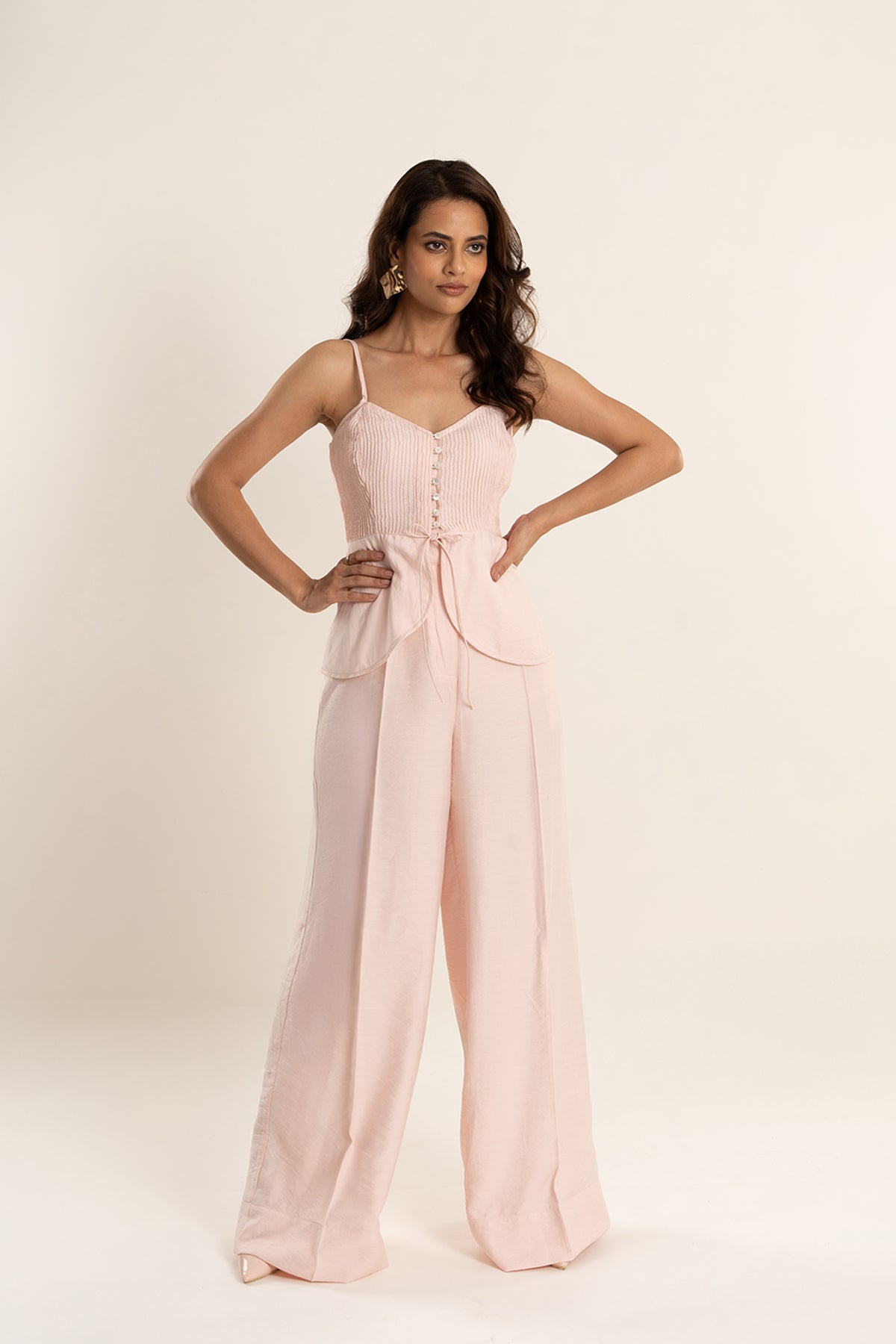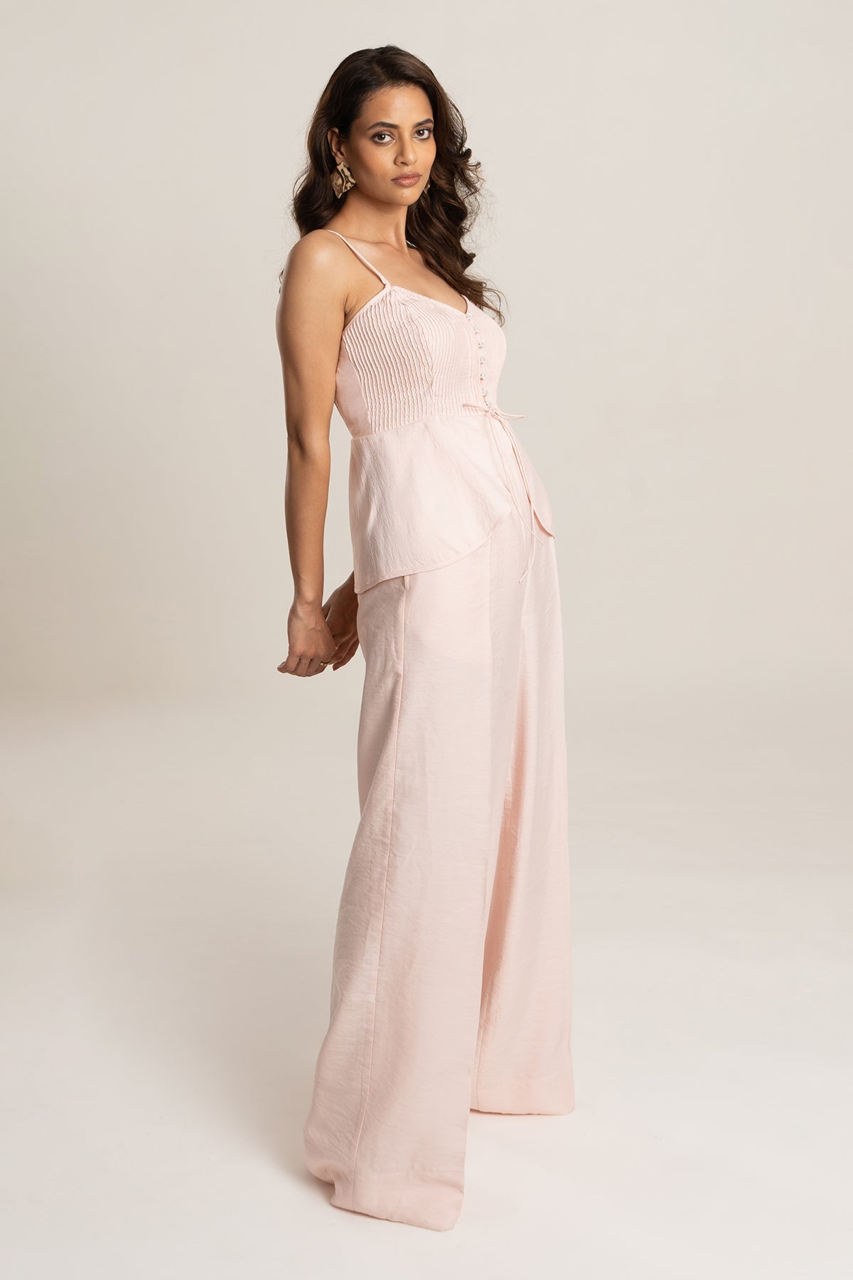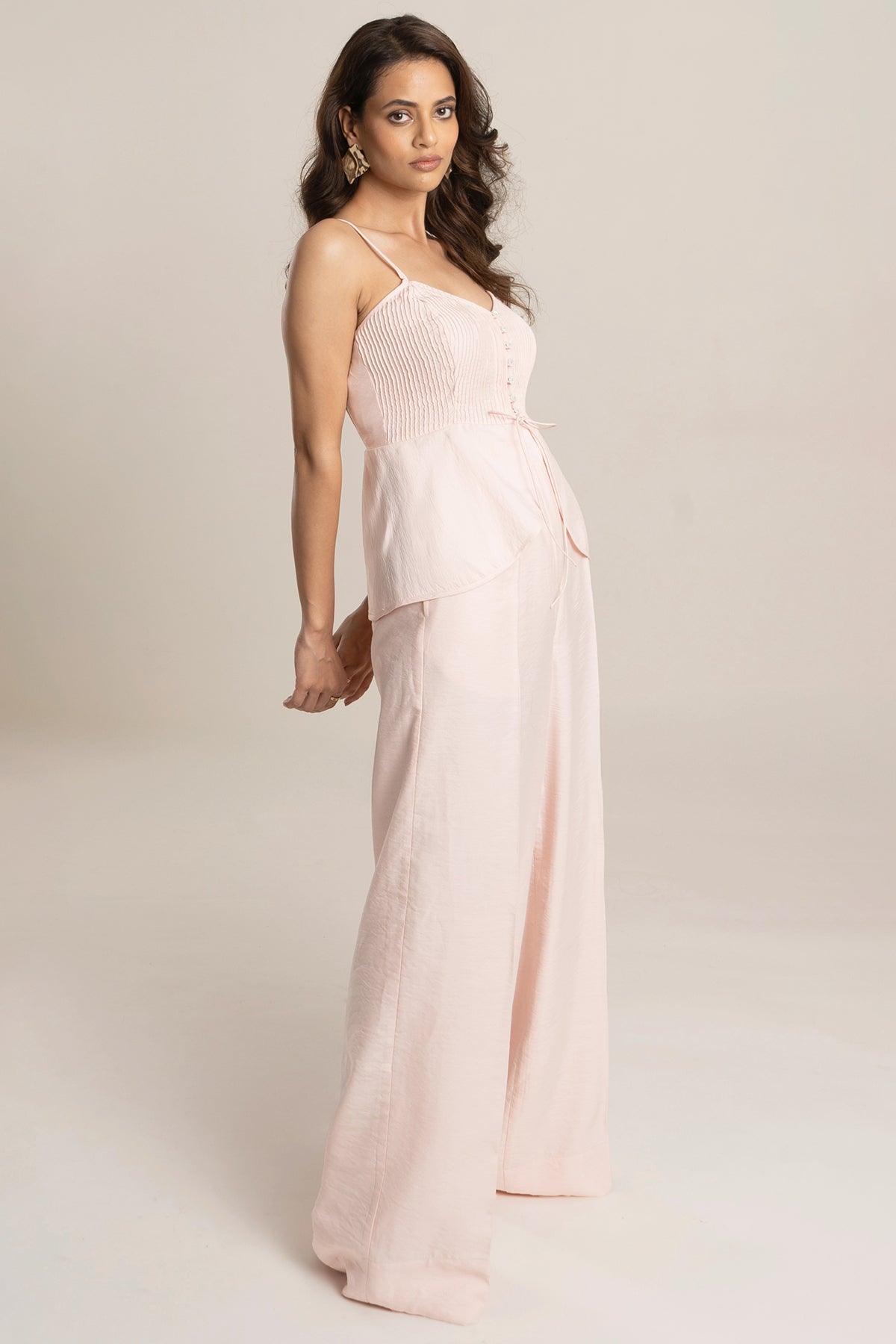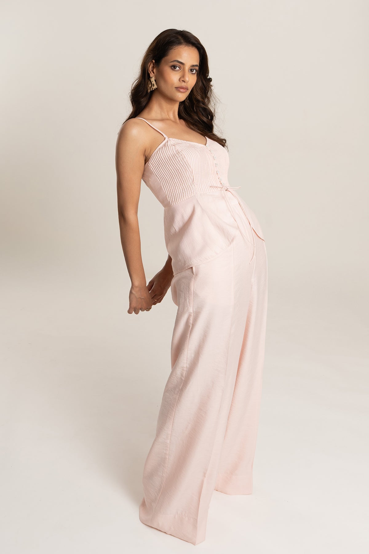 Soft power redefined. The Rosette Top is a corset-inspired design with delicate buttons and a tie detail, sculpting the waist with gentle precision. In a soft blush tone, it blends femininity with freedom — perfect for slow mornings, sunlit strolls, or elegant getaways.
