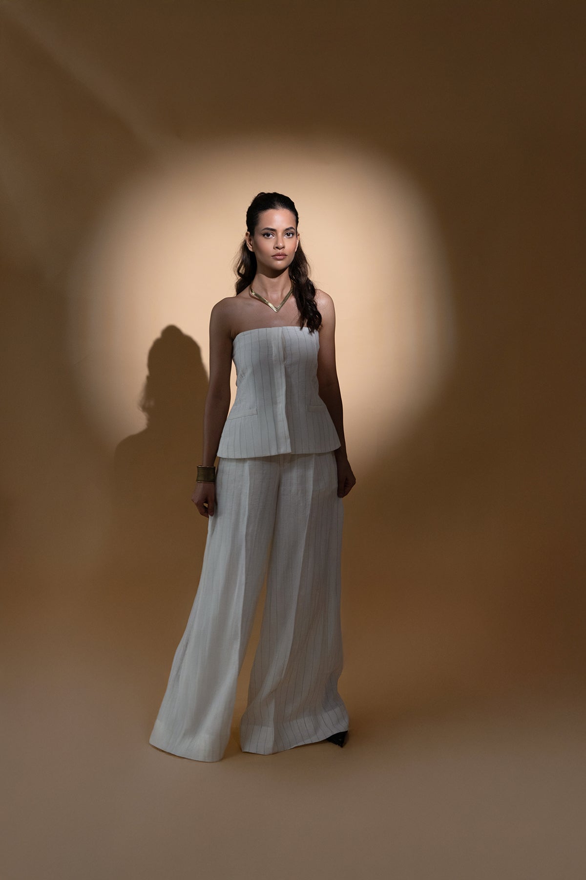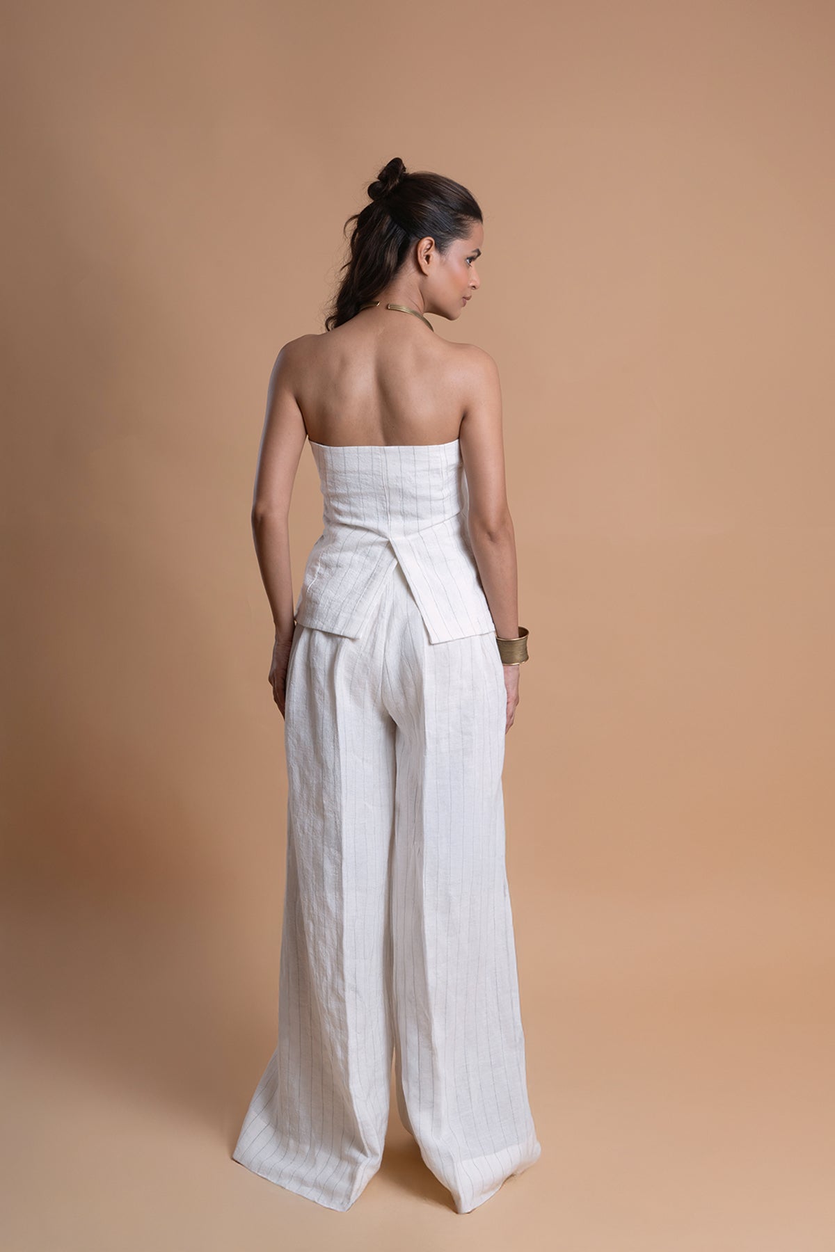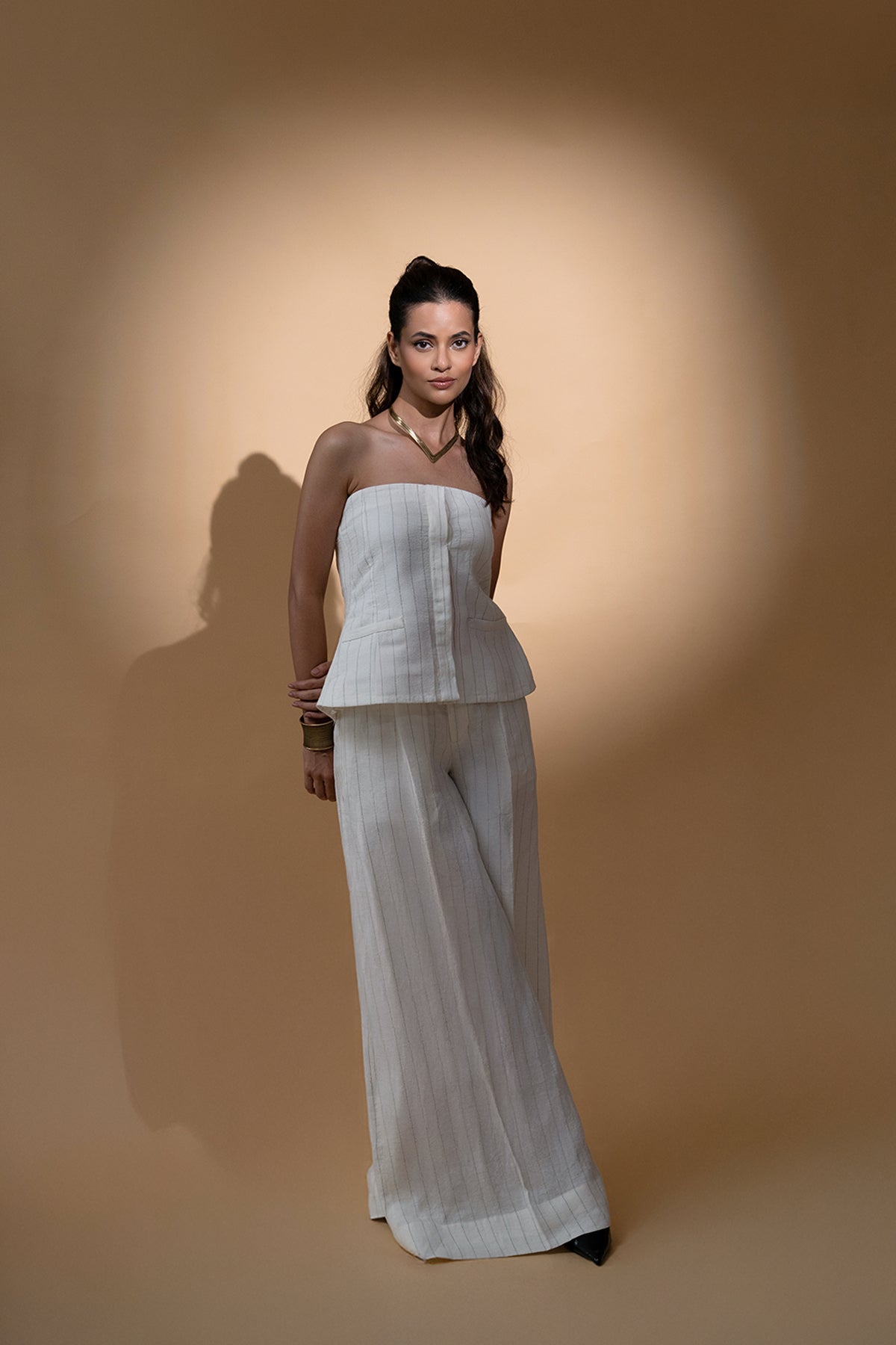 A modern ode to summer tailoring. The Striscia Trousers bring a relaxed elegance to warm-weather dressing, with their wide-leg, pinstriped design cut from airy linen. Flowing yet structured, they strike the perfect balance between ease and polish. From sunlit brunches to seaside strolls, these trousers move with you — understated, versatile, and endlessly refined.