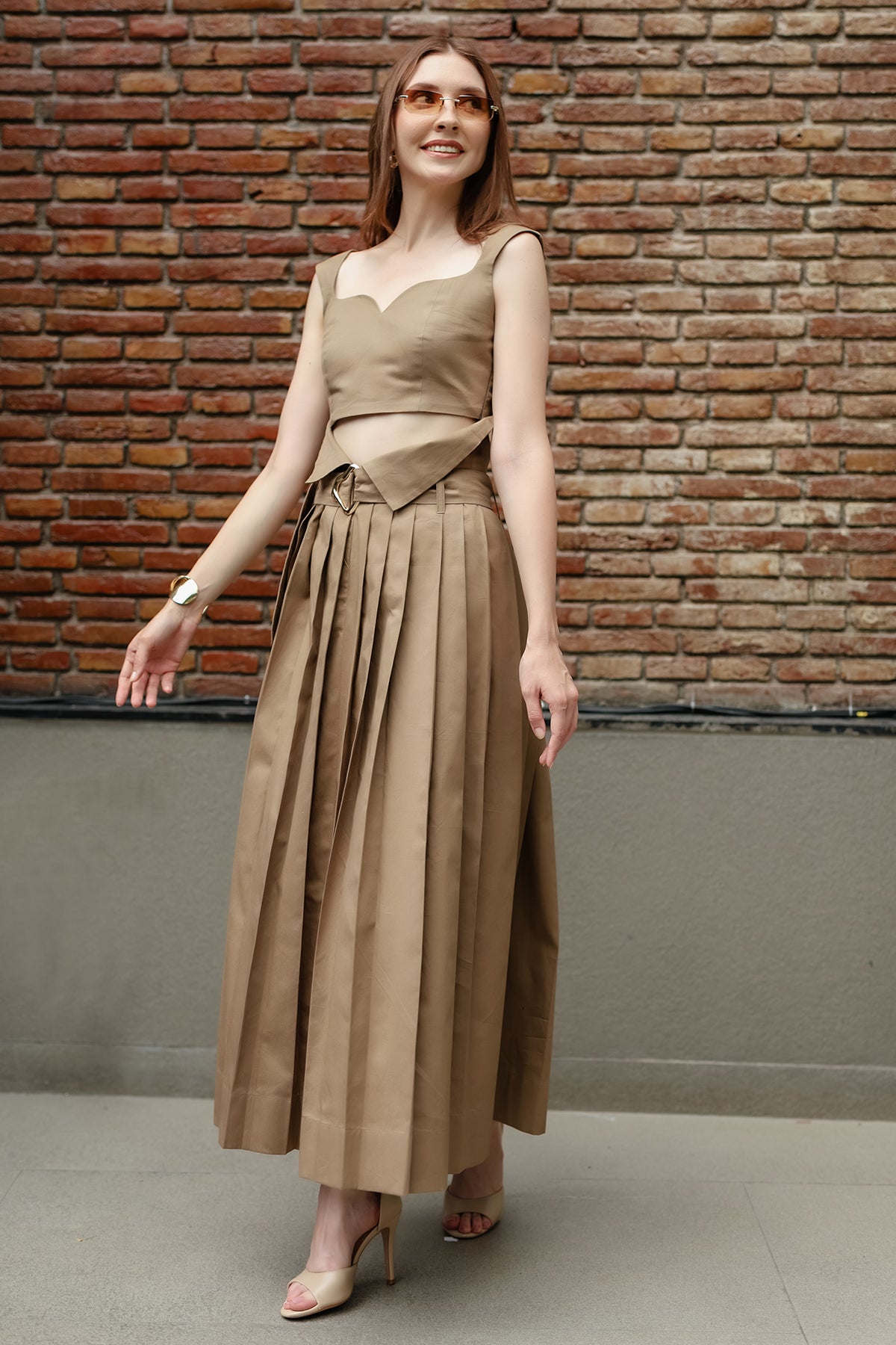 Defined by structure and flow, The Contour crop top embodies architectural elegance. Crafted in crisp cotton, the sculpted sweetheart top features an angular hem that cinches at the waist.